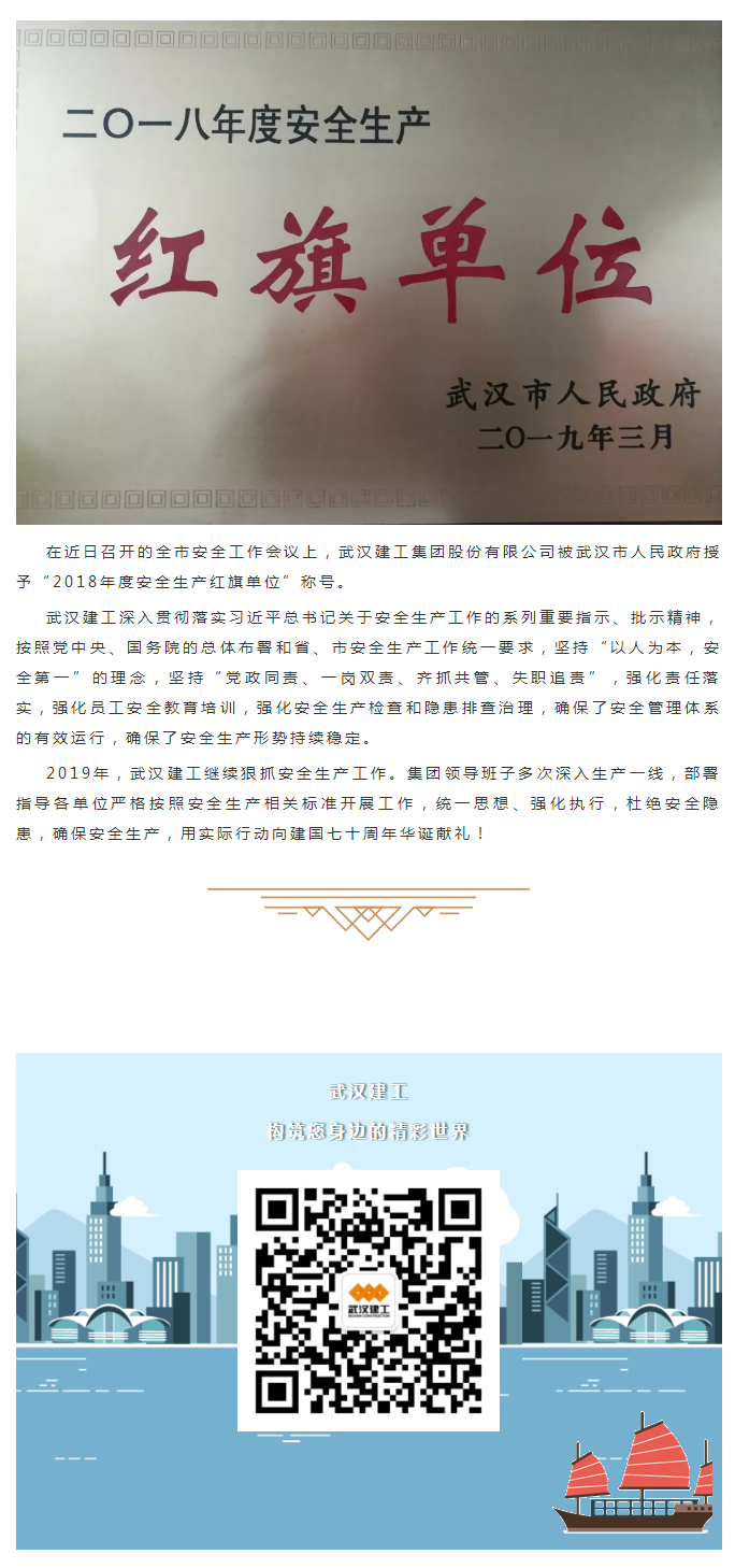 武漢建工被市政府授予 “2018年度安全生產(chǎn)紅旗單位”稱(chēng)號(hào)