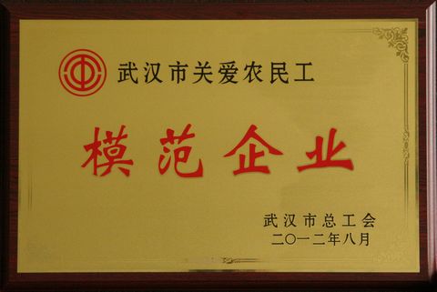 2012年8月28日,在武漢市總工會召開的武漢市職工服務中心建設推進會上,一批業(yè)績突出的優(yōu)秀農民工和一批關愛農民工的模范企業(yè)受到了表彰。武漢建工在關心、愛護和尊重農民工方面作了積極努力,被授予武漢市關愛農民工模范企業(yè);來自中澤勞務公司的芳卉園項目部泥工班長易立軍被授予武漢市十佳農民工,授予武漢五一勞動獎章;來自孝感大興勞務公司的武昌工人文化宮項目部木工班長夏壽明被授予武漢市優(yōu)秀農民工。